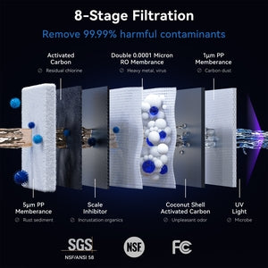 Waken Electric U11X Reverse Osmosis Water Filtration System Undersink,7-Stage Alkaline RO Filtration with Smart Features, 2:1 Pure to Drain